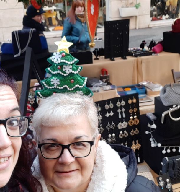 Quadri decorati, orologi in stile cartone animato, composizioni e tanto tanto altro, questa è Cristina Arelli con le sue creazioni artigianali. Mi racconta di ore ed ore passate a decorare, a dipingere, sorride e mi chiede" ma tu pensi che io la sera guardo la TV? No...la sera dipingo e creo fino a tarda notte, fino a che non sono certa che il lavoro sia venuto bene, proprio come lo volevo io!!" Eccoli qui gli artigiani, ogni manufatto è ricco di cura e dedizione..e Cristina lo sa bene, anche Claudio, il marito ne sa qualcosa, infatti con lei compone e crea molti dei suoi lavori, lavorando le sagome di legno. Quando si facevano i mercatini il loro banco, lo riconoscevi subito, sagome in legno colorate, orologi di ogni forma appesi, legno e profumo di tempera... cosa aspetti incontra Cristina.